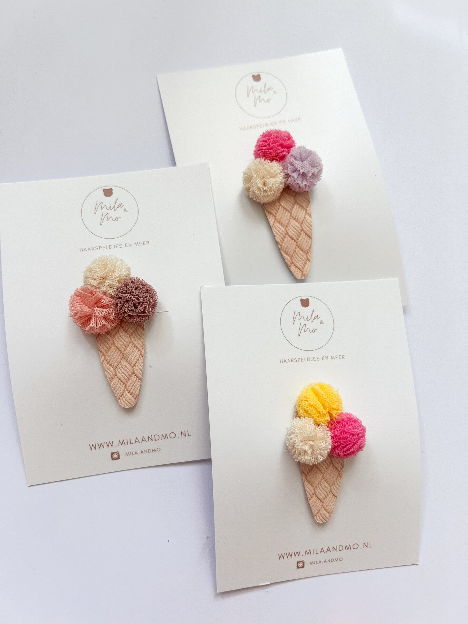Ons schattige ijsjes-haarspeldje brengt instant vrolijkheid op zonnige dagen. Perfect voor kleine ijsliefhebbers die willen stralen!